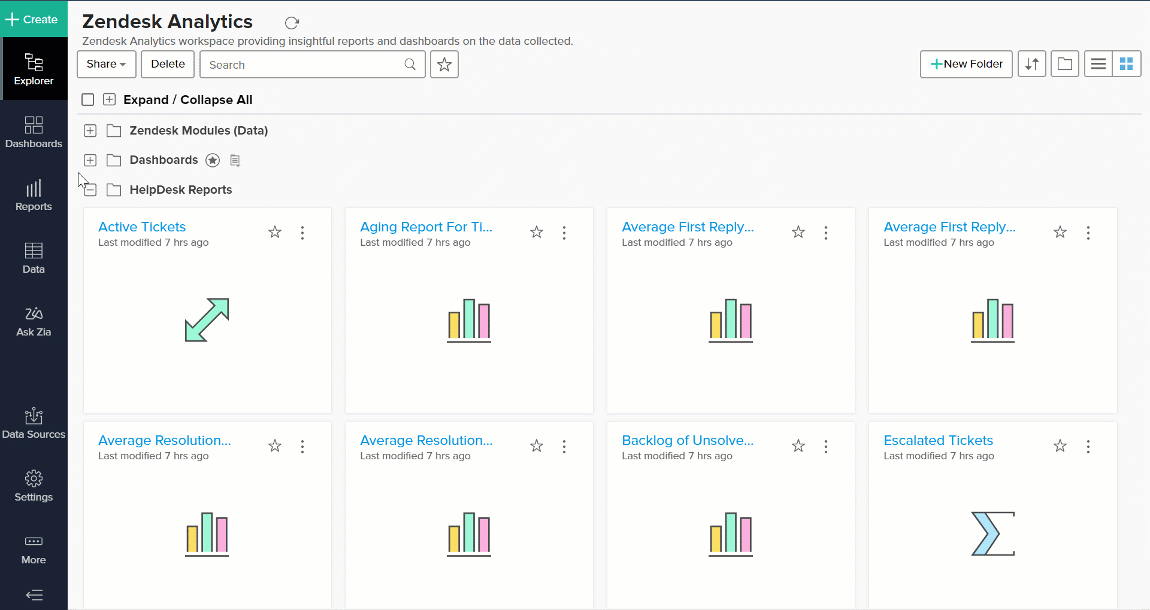 Analytics Plus supports a wide variety of reports, in the form of charts, pivot tables, summary views and tabular views. To know more about the various types of reports, click here. To know more about dashboards and KPI widgets, click here.