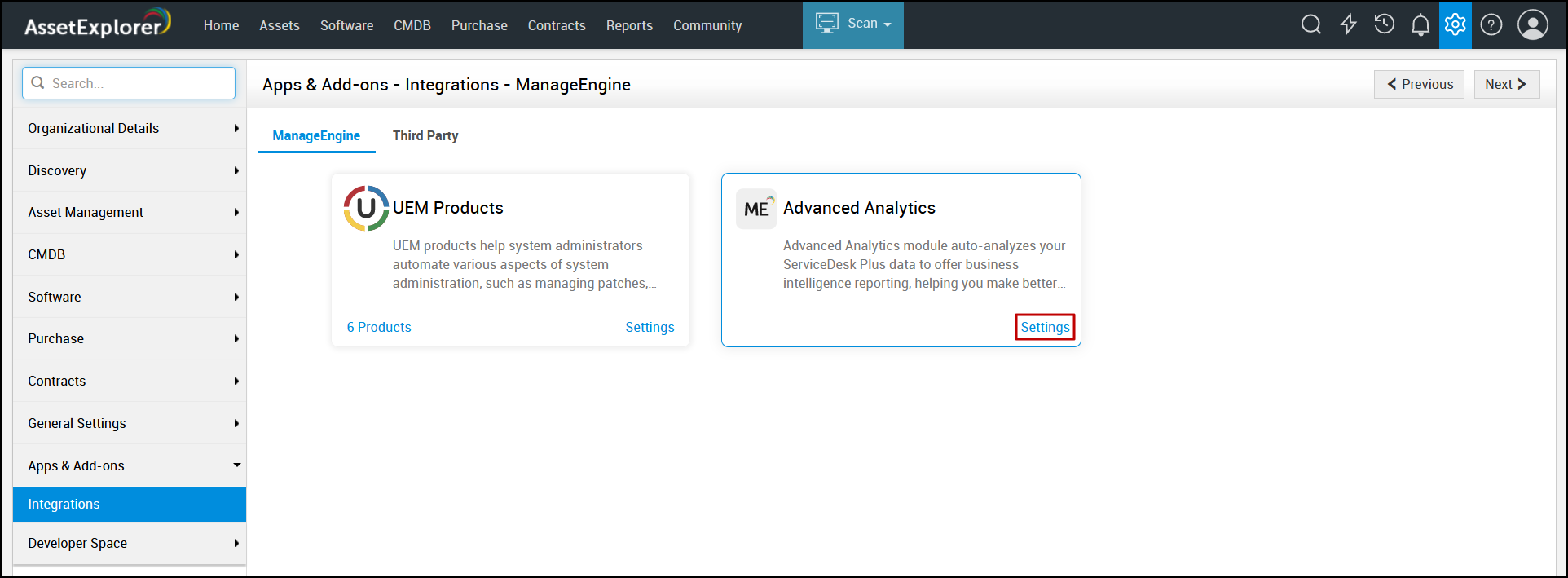 To set up the Analytics Plus and AssetExplorer integration, the user should be an Administrator in AssetExplorer, and an Account Administrator or Organization Administrator in Analytics Plus.