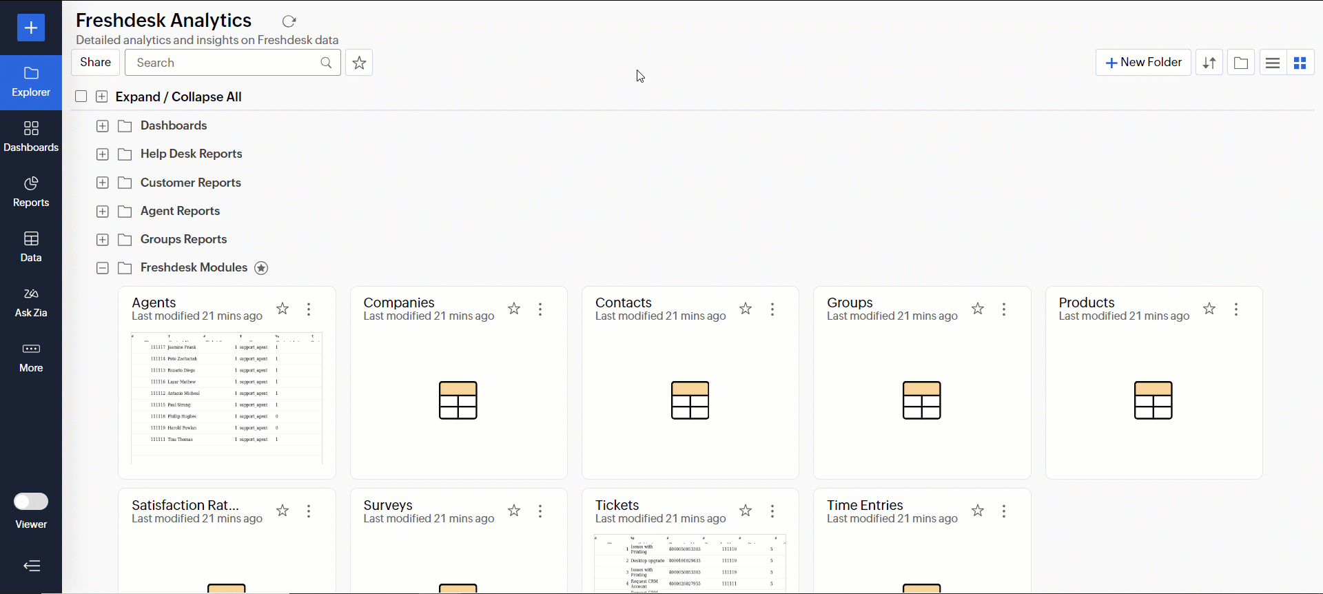 Analytics Plus allows you to auto-generate reports and dashboards effortlessly. You can customize the reports later based on your evolving requirements. Follow the steps below to do this.