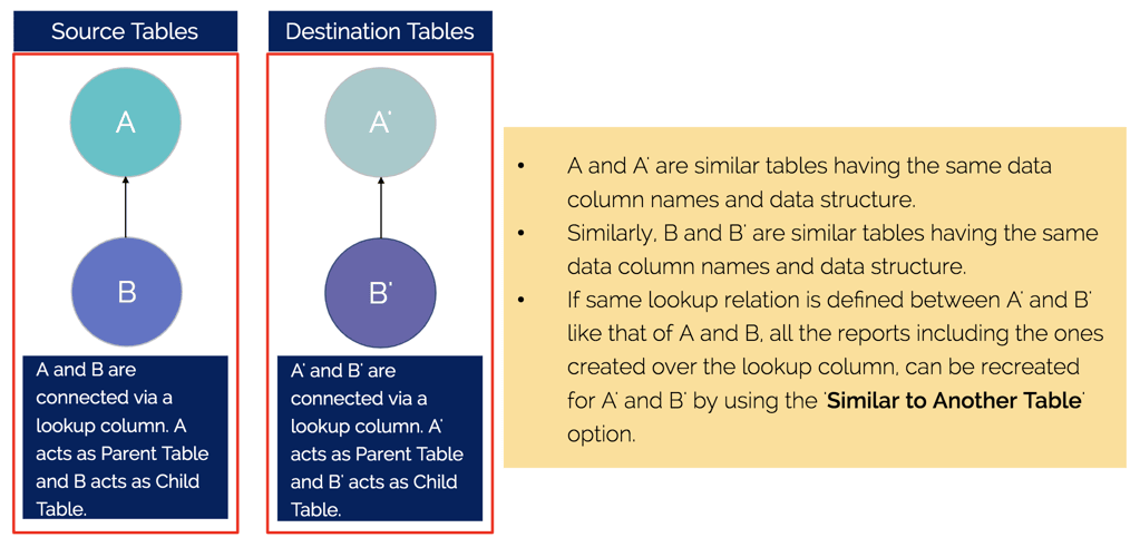 For tables that are interconnected using lookup columns, the below conditions should be met to use the Similar to Another Table option.