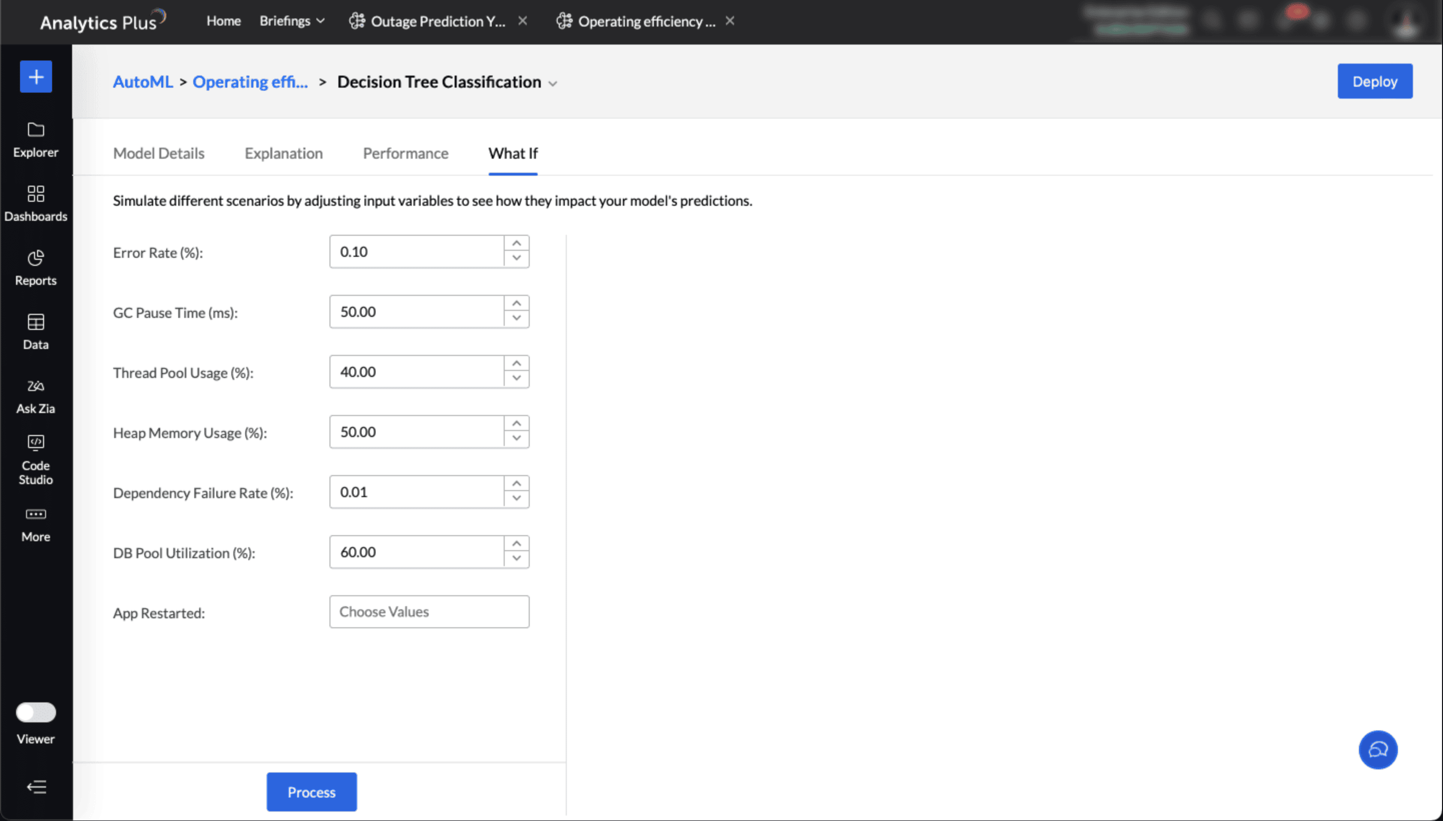 What-if analysis in AutoML enables you to explore how changes in IT metrics or operational factors affect the final outcomes predicted by the machine learning models. By simulating different scenarios, you can:
