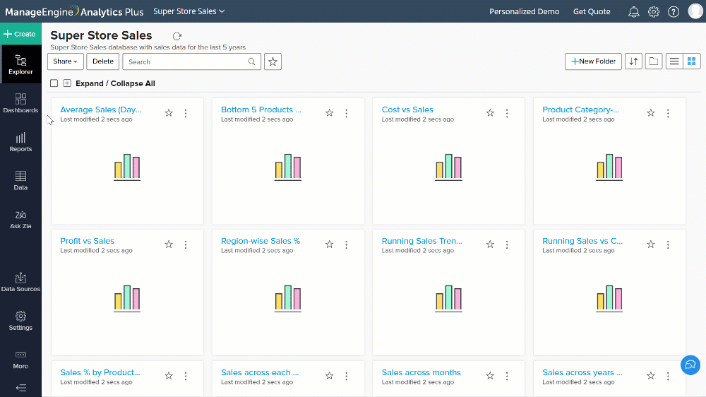 Analytics Plus is a self-service business intelligent and analytics software that empowers you to transform complex IT data into actionable insights without the data scientists. It allows you to create intuitive reports and dashboards and collaborate with the team for informed decision-making.