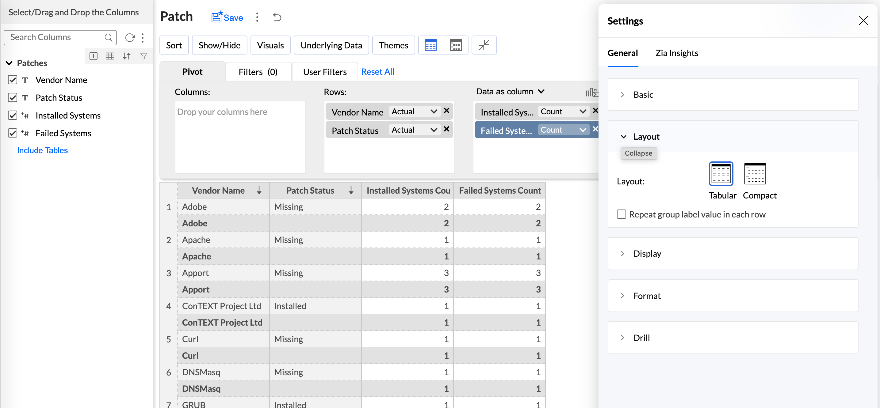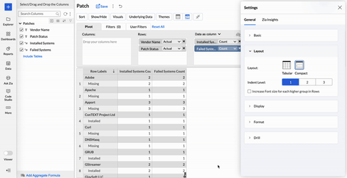 Analytics Plus allows you to customize the layout and various display options in the pivot table.