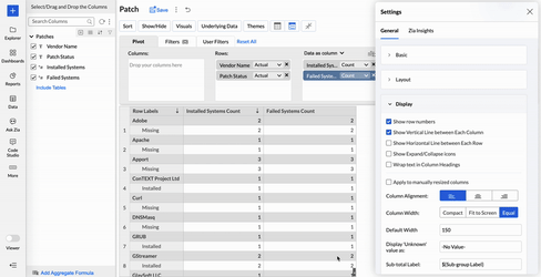 Analytics Plus enables you to change the display label and format of the data columns used in the pivot table. To do this, follow the steps below: