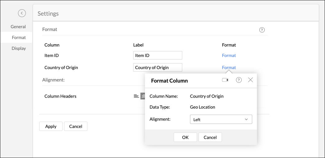 - Click the Format link adjacent to each label to change the format of the data in the pivot table. The options displayed in the Format Column dialog vary depending on the data type of the column and are similar to that of the table column formatting. Click here to learn more about formatting a table column.