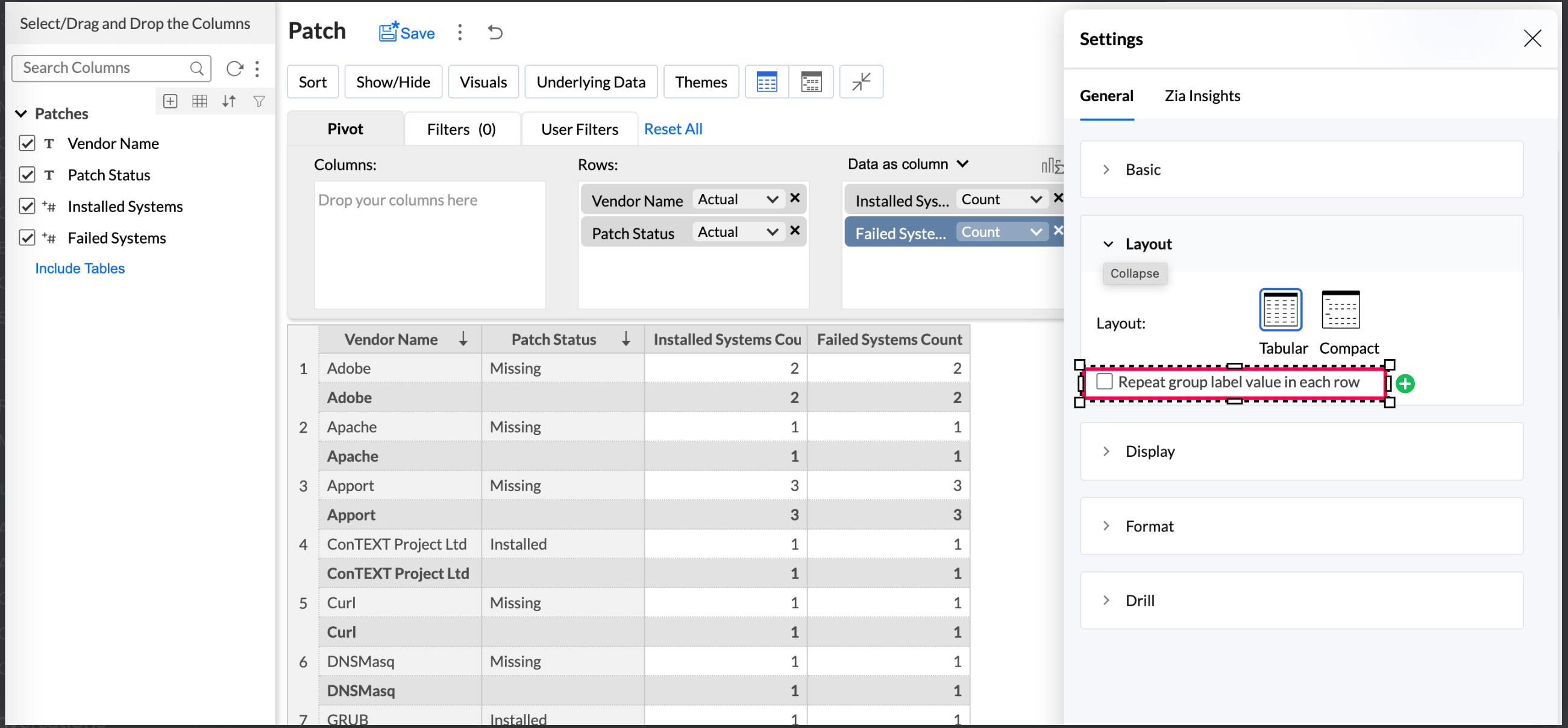 You can also choose to display the filtered or missing values in the pivot table from the General settings page. Refer to the following section to learn more about displaying missing values.