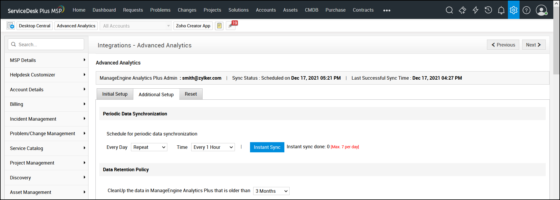 6. Can I synchronize my ServiceDesk Plus MSP data on-demand?