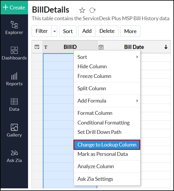• Open the corresponding table, right click the column header and select the Change to Lookup Column option.