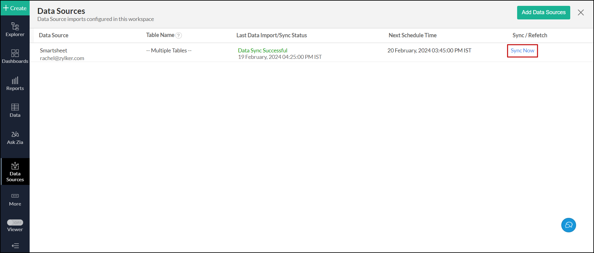 Yes. To do this, click the Data Sources option from the side panel. In the page that appears, navigate to the Smartsheet source and click the corresponding Sync Now button.