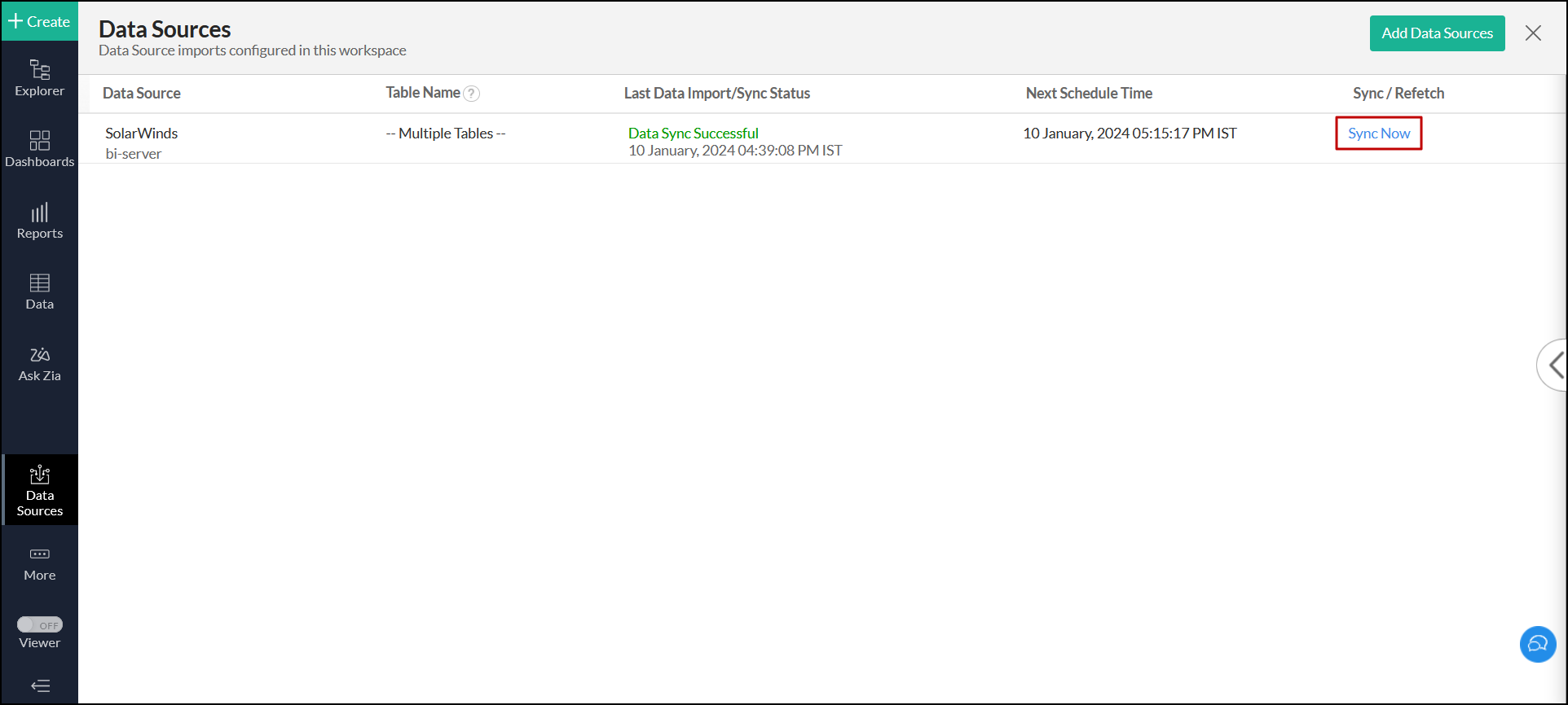 - Open the required workspace, and click the Data Sources option from the side panel.