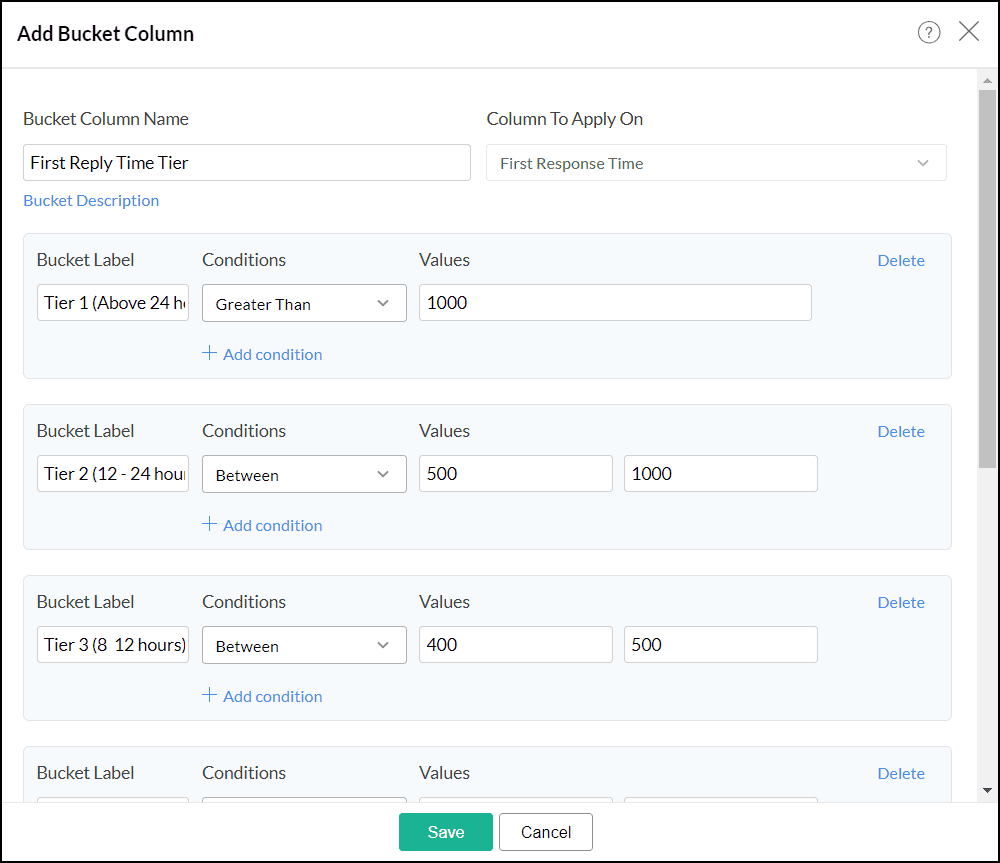 - Click the Add option on the toolbar and choose Bucket Column. (or) Right-click the column you need to create buckets for and choose Add Buckets from the drop-down.