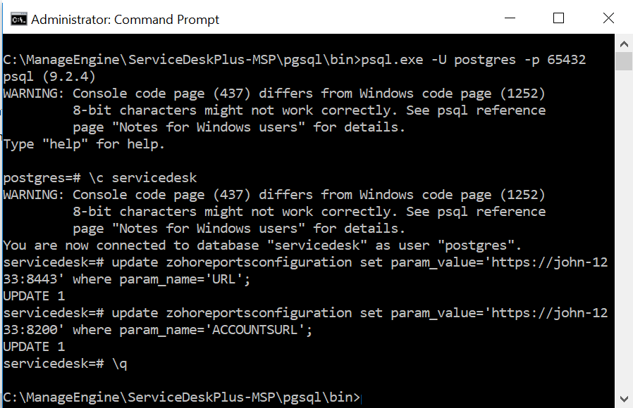 3. Change the location to <ServiceDesk Plus MSP_Home>\pgsql\bin directory.