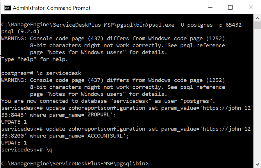 3. Change the location to <ServiceDesk Plus MSP_Home>\pgsql\bin directory.