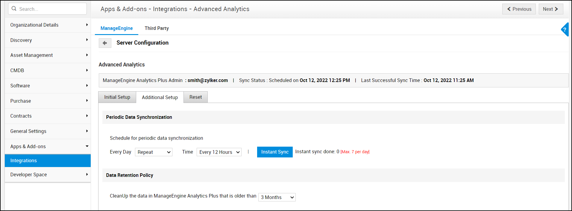 • Navigate to the Additional Setup tab and click the Instant Sync button.