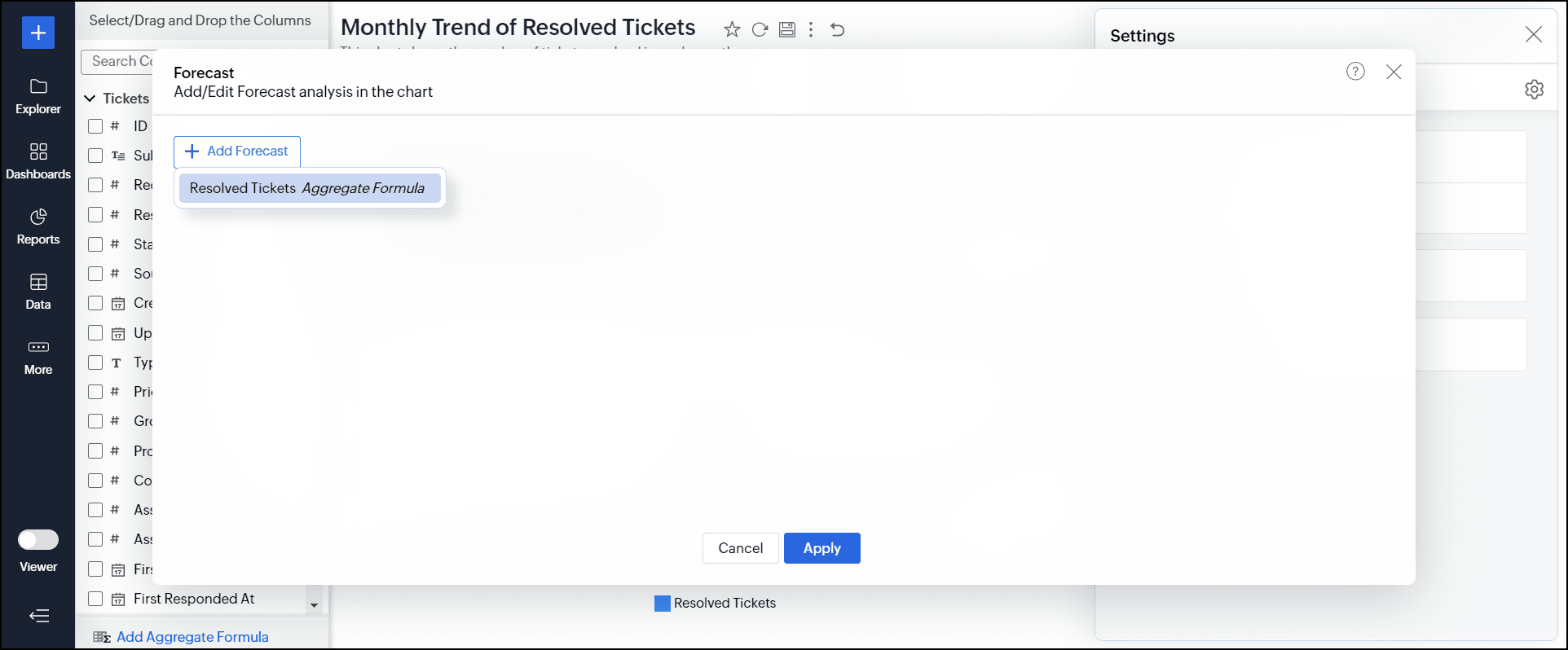 3. In the dialog that appears, click the + Add Forecast button and choose the column for which you intend to forecast values.