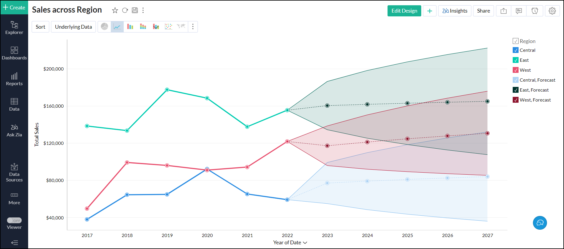 Analytics Plus lets you access the forecast model information in both the View and Edit Design modes. To do this, follow the below steps.
