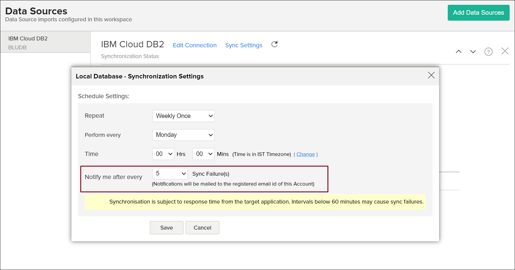 Specify the number of consecutive import failure after which you are to be notified using the Notify me after every 'N' Sync Failure (s) section.