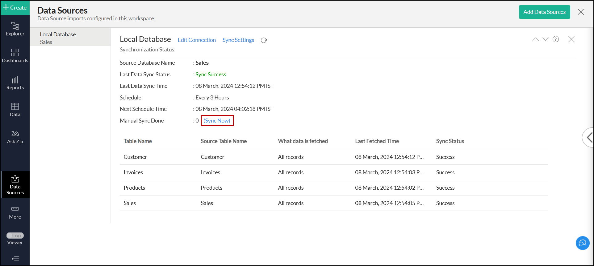 Analytics Plus allows you to schedule data import for any existing tables imported from Actian Ingres database. Follow the steps below to do this.