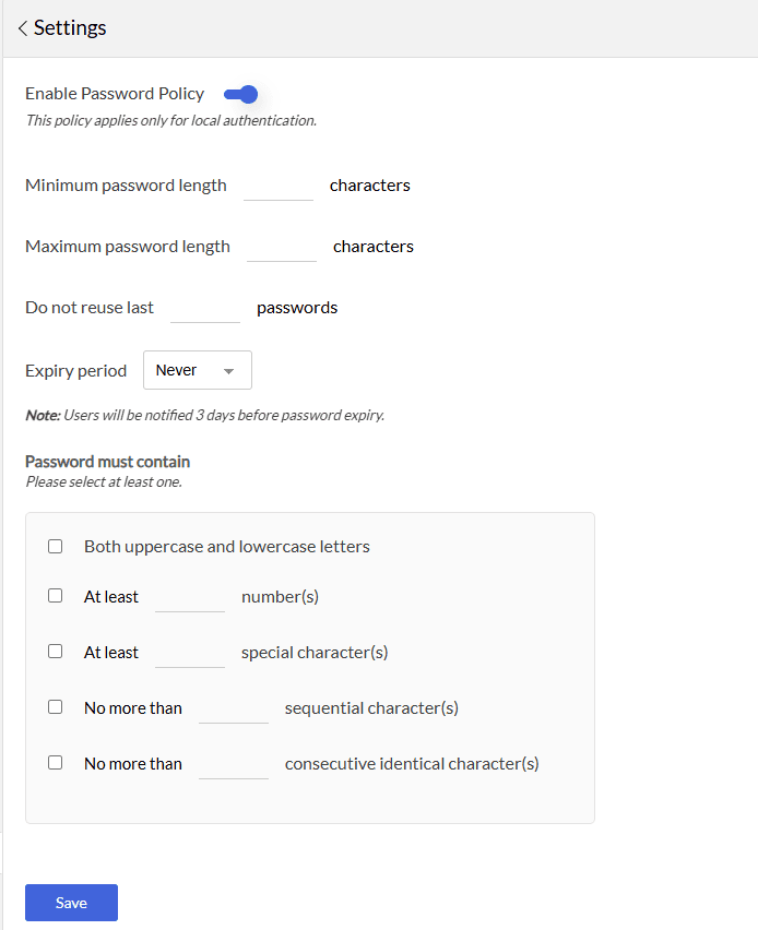 Turn ON the Enable Password Policy toggle, then customize the settings according to your preferences.