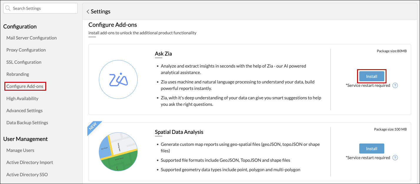 • In the screen that appears, head to the required add-ons listing and click Install.
