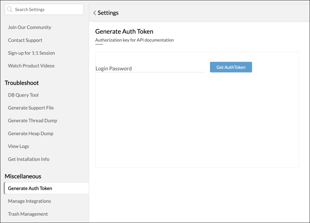 Generate auth token: Enter the login password and click Get AuthToken to generate the Auth Token.
