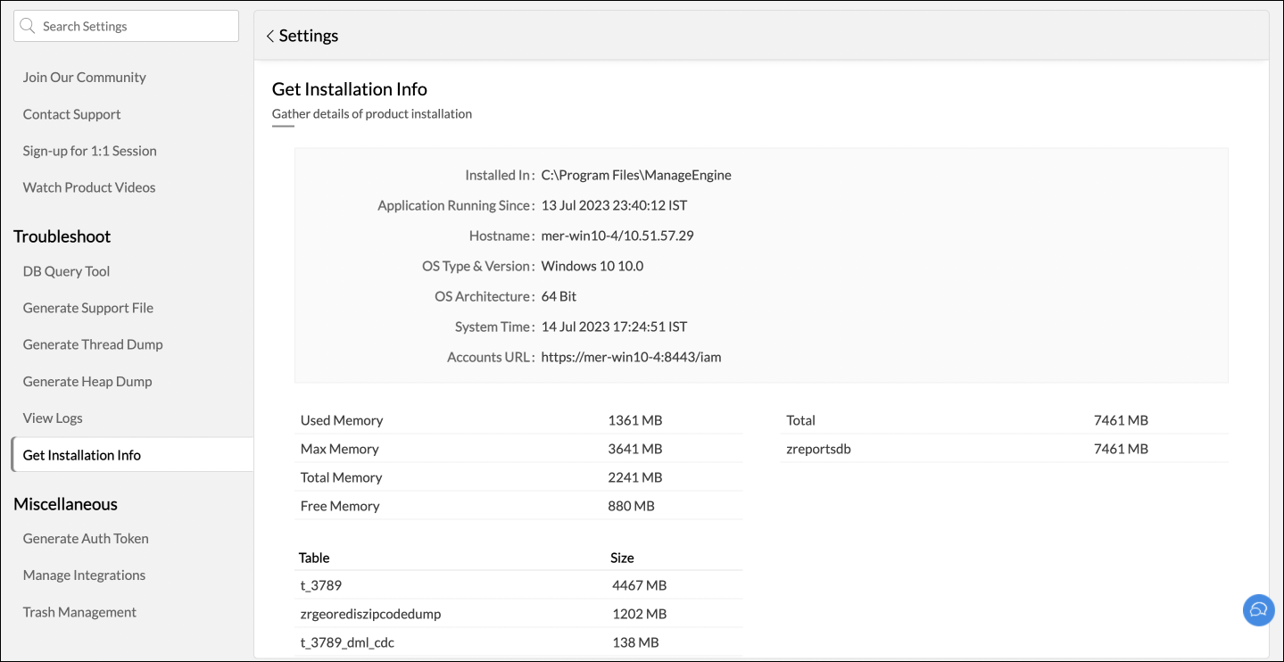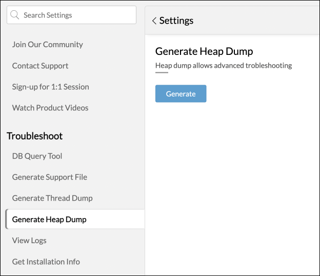 Generate Heap Dump: Click Generate to generate a Heap dump that allows advanced troubleshooting.