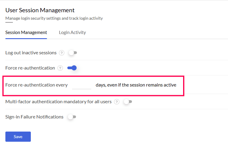 With this option, you can specify the intervals at which users must re-authenticate. This adds an extra layer of security even if the session stays active.