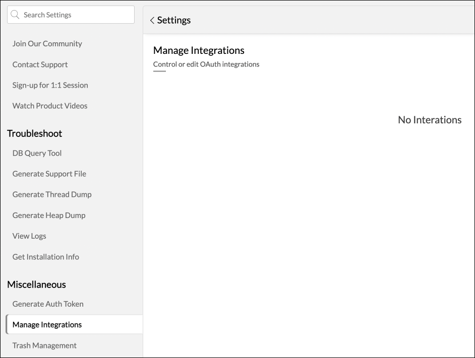 Manage Integrations: Control or edit OAuth integrations under the Manage Integrations section.