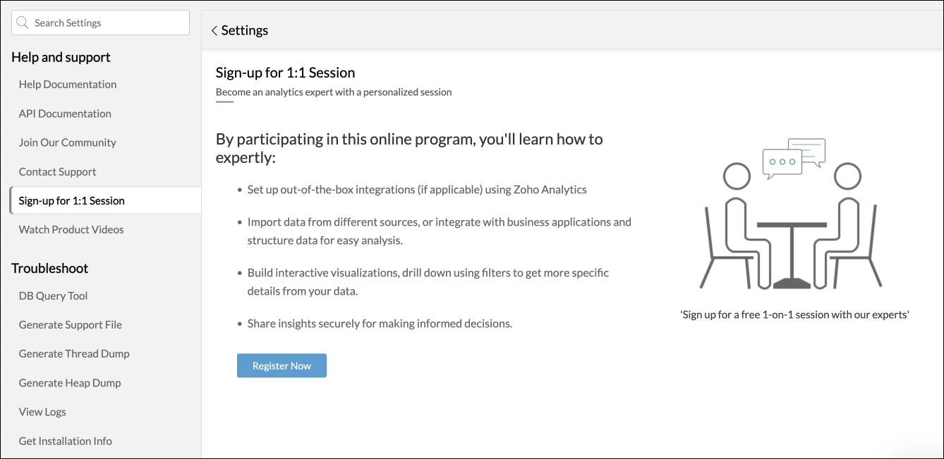 Sign-up for a 1:1 session: Click Register Now and become an analytics expert with a personalized session.
