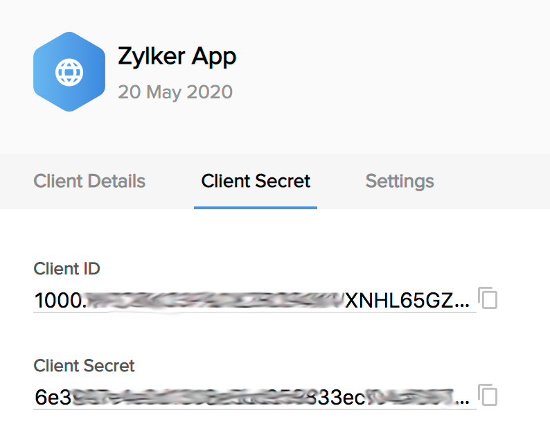 The client credentials will be displayed. Below is how the client credentials will look for a server-based client application: