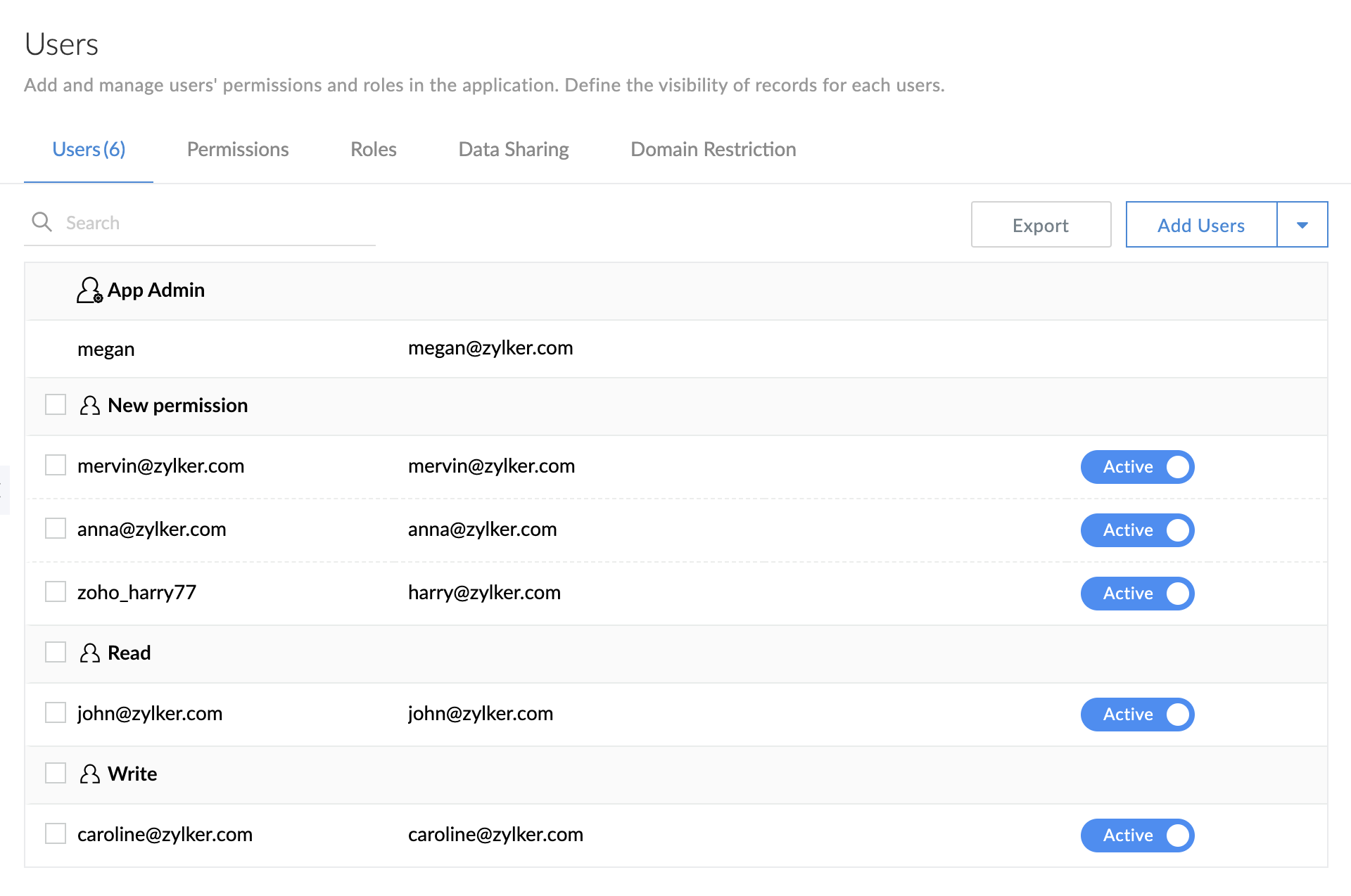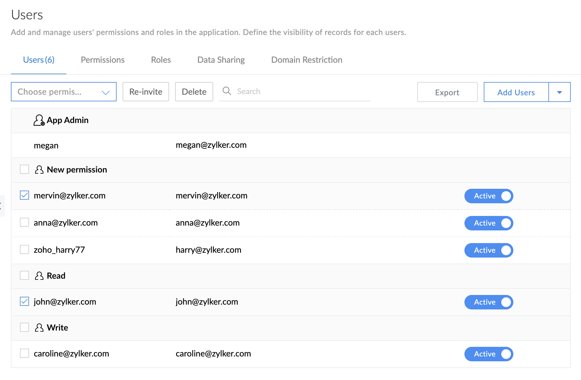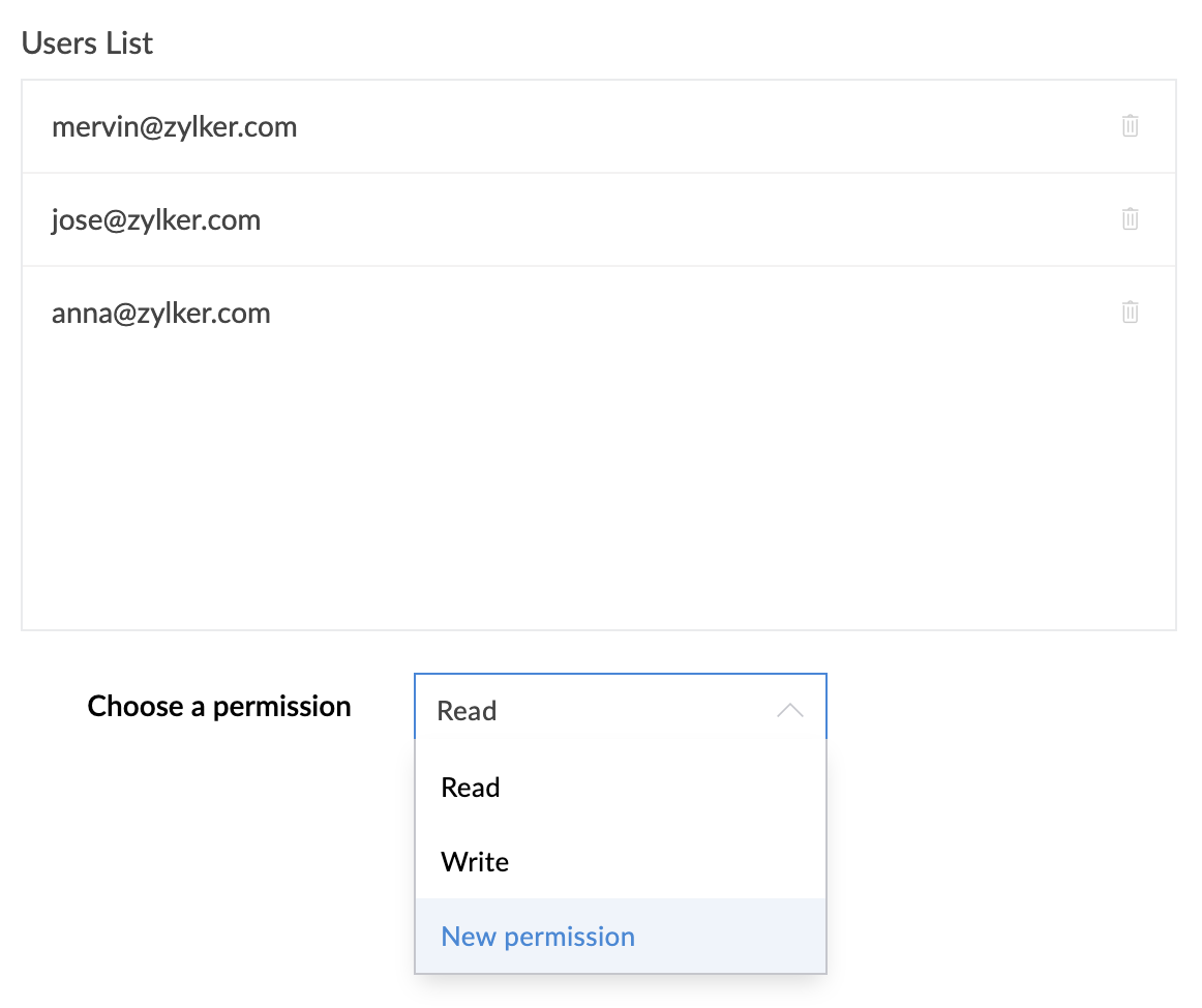 - The users can be assigned three different permissions: Read, Write, and Custom. To configure a custom permission set, click + Add Permission Set.