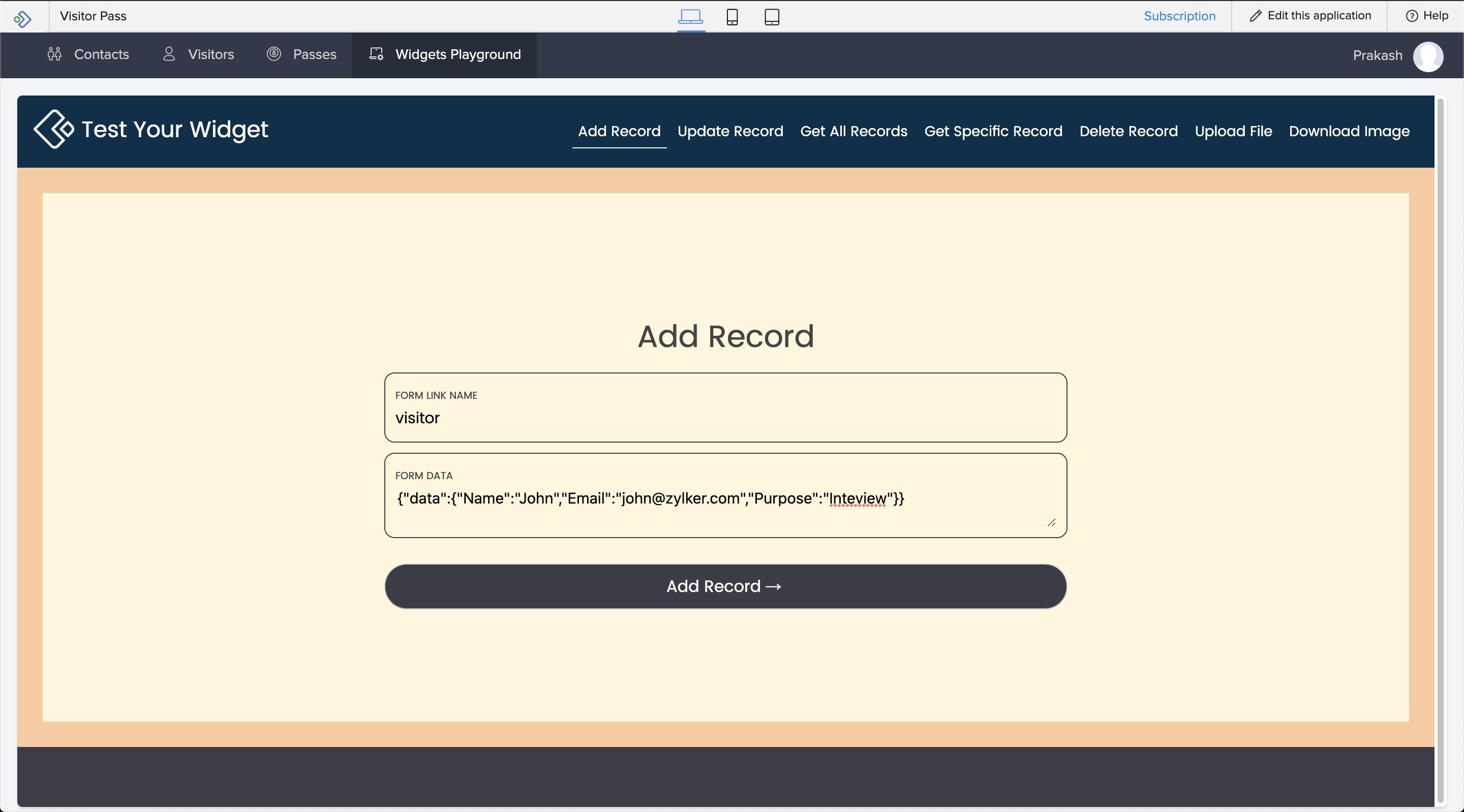 - Navigate to the page where the widget was added. The widget will now be displayed.