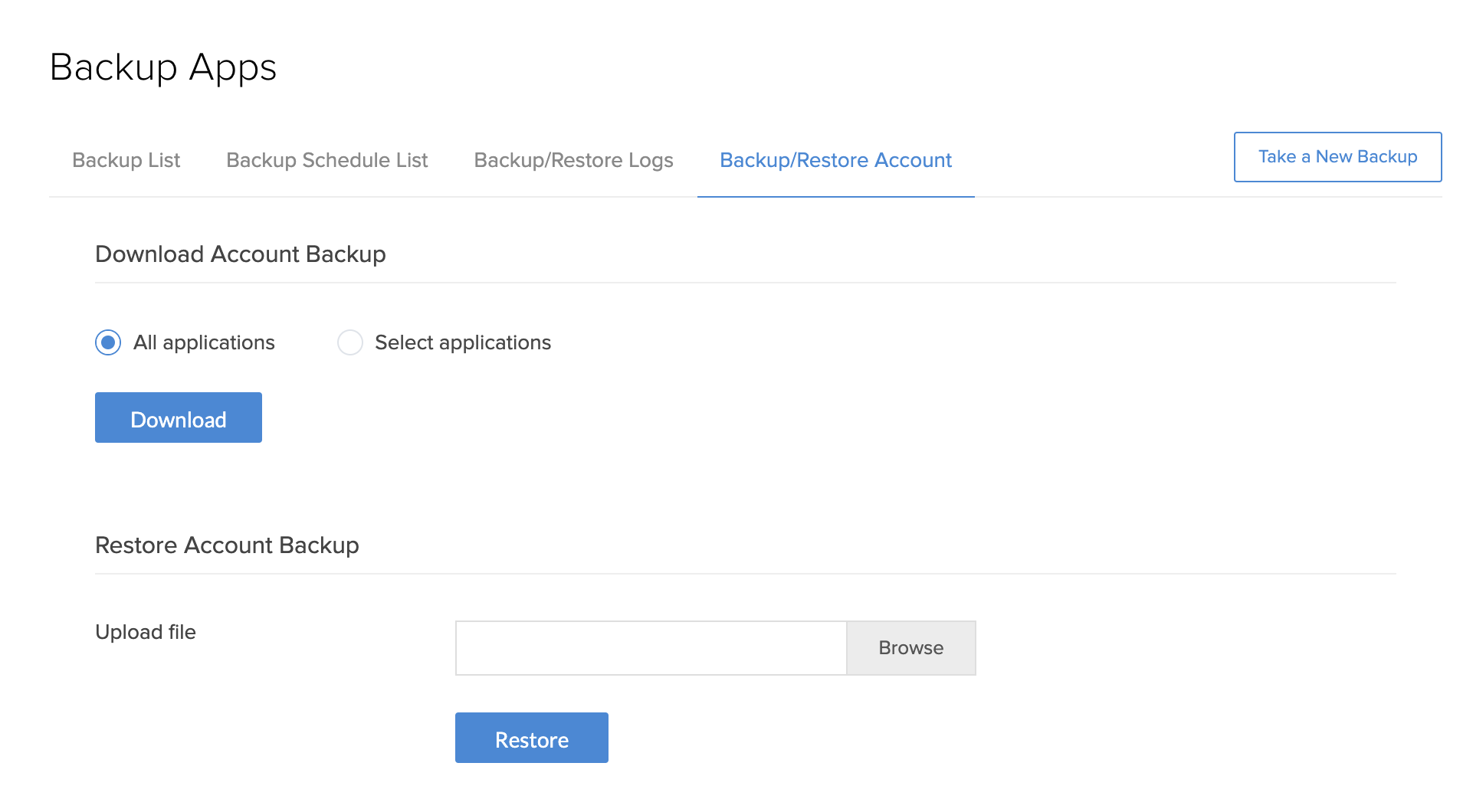 The App Backup feature enables you to back up the applications and restore them whenever required. You can do a one-time backup or set the frequency of backups to take place automatically at regular intervals when you don't have time to back up data manually. Also, you can restore your application structure and data from the version you choose.  Learn more