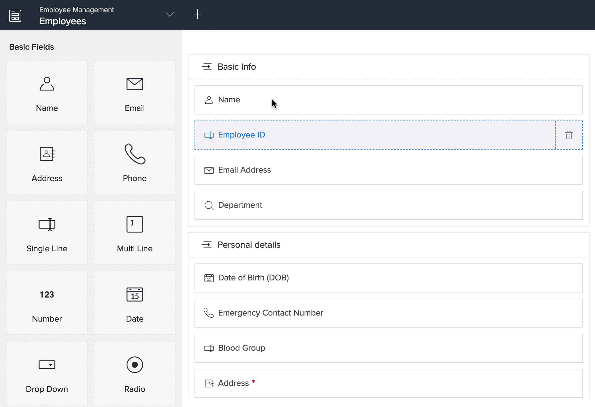 - Rearrange fields in the required order: