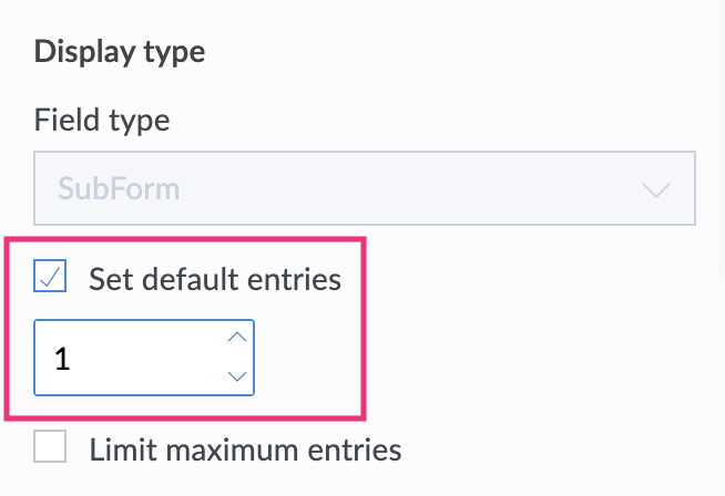 The default number of entries in a subform cannot exceed its maximum number of entries. If you set Set default entries with a value greater than that of Limit maximum entries, ManageEngine AppCreator will display a prompt.