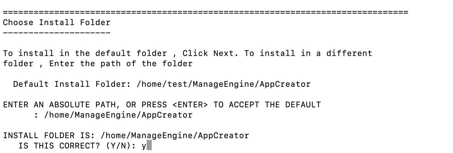 - Execute the installation file using the following command:./ManageEngine_AppCreator.bin -i console