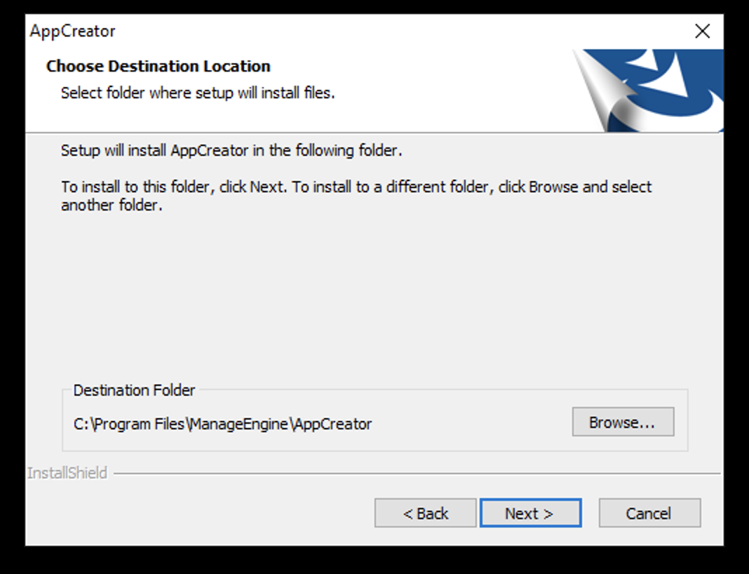 - Click Next in the InstallShield Wizard for ManageEngine AppCreator.