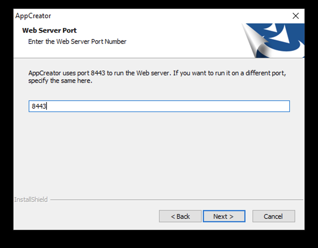 - Set the Web Server Port, then click Next. It'll be set as 8443 by default.
