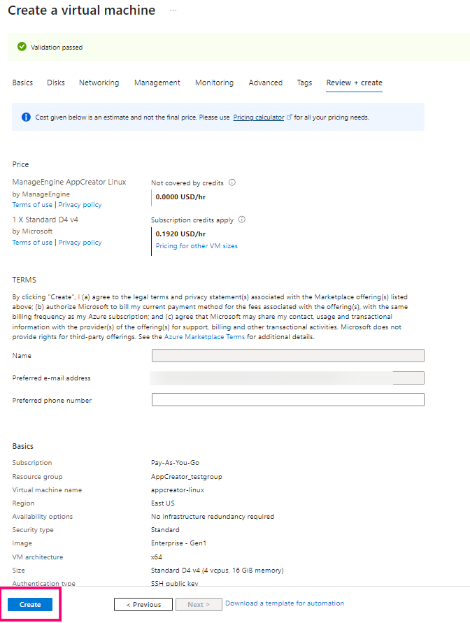 A pre-configured virtual machine image that contains the operating system (OS) and AppCreator preinstalled, will be available in the Azure Marketplace. The below steps will guide you to deploy ManageEngine AppCreator on Azure.