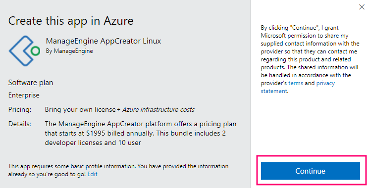 Installing ManageEngine AppCreator on Azure is accessible in both trial (30 days) and paid pricing plans.