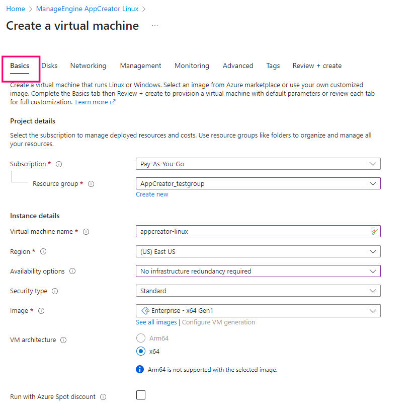 - For Marketplace images, the firewall rules in the machine are pre-configured for ManageEngine AppCreator.