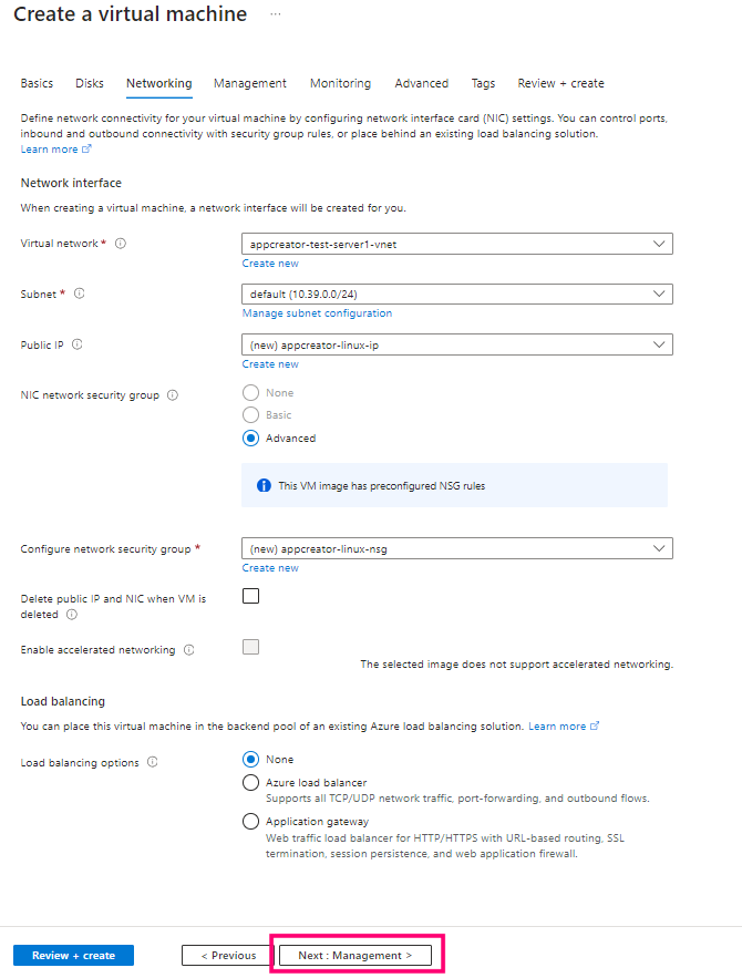Step 10: Select the virtual network and subnet for your VM and fill in the required details in the Networking tab.
