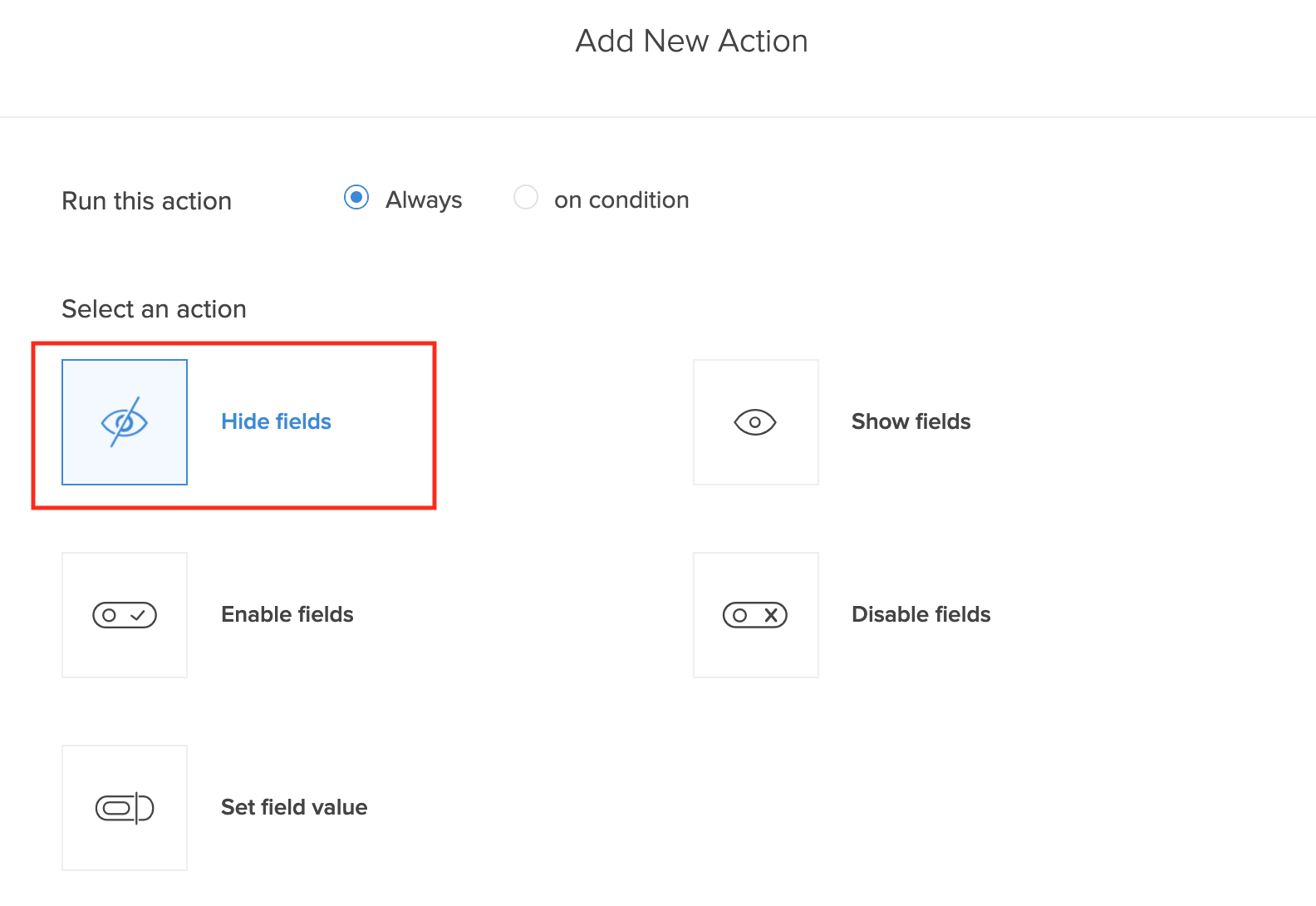 5. The Select Fields drop-down lists all the fields in your form. Select the fields that you want to hide.