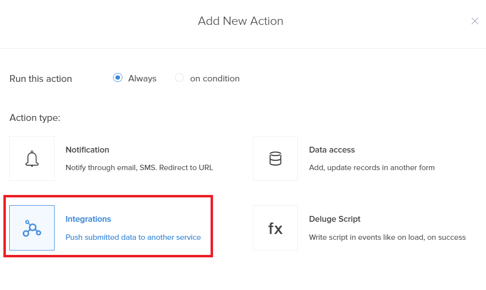 - ManageEngine AppCreator executes the action whenever there is an activity on the form. You can run the action for selected records by setting the criteria. Refer to the Set criteria page to learn more about setting criteria in a workflow.