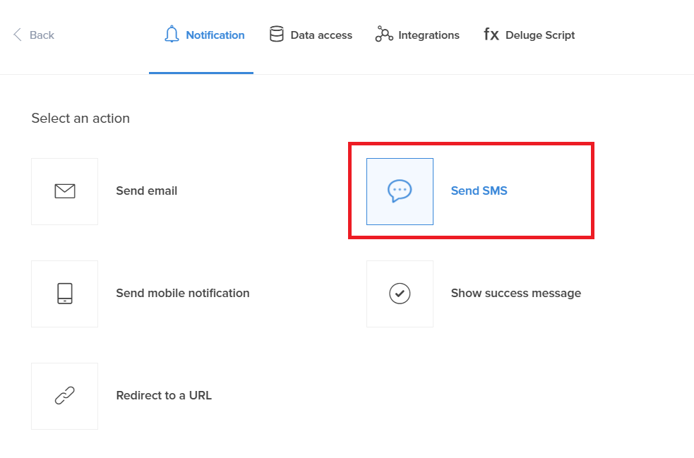Zoho Creator will now trigger the SMS notification when there is an activity on the form.