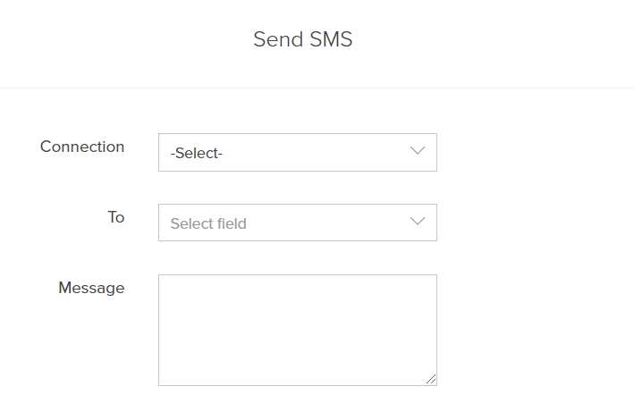- Click the Connection drop-down and add a new connection through any of the supported SMS service providers with whom you have an account.