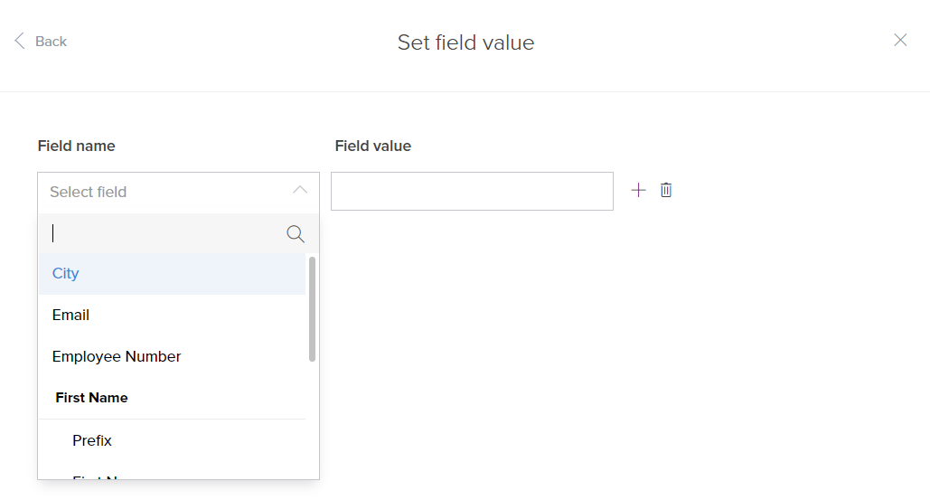 - Select the field and assign a value to it. You can set values for multiple fields at once.