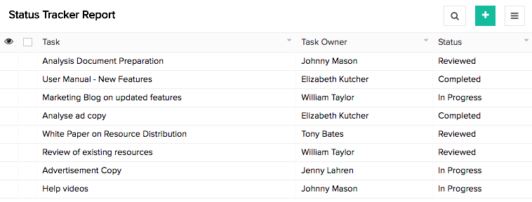 Quick view facilitates actions that are applicable to the report on the whole or a collection of records. You can perform an action to a bulk of records thereby making changes to multiple records at one go or removing many records at one shot. Let's assume that you have a Task Management application in which you have a status tracking report. If you have records that are in Assigned for Review status to be changed to Reviewed status, you can achieve by using the bulk actions. Search for the records that match the Assigned for Review status and select the records. The edit icon appears. Click the edit icon and change the field value to Reviewed status.