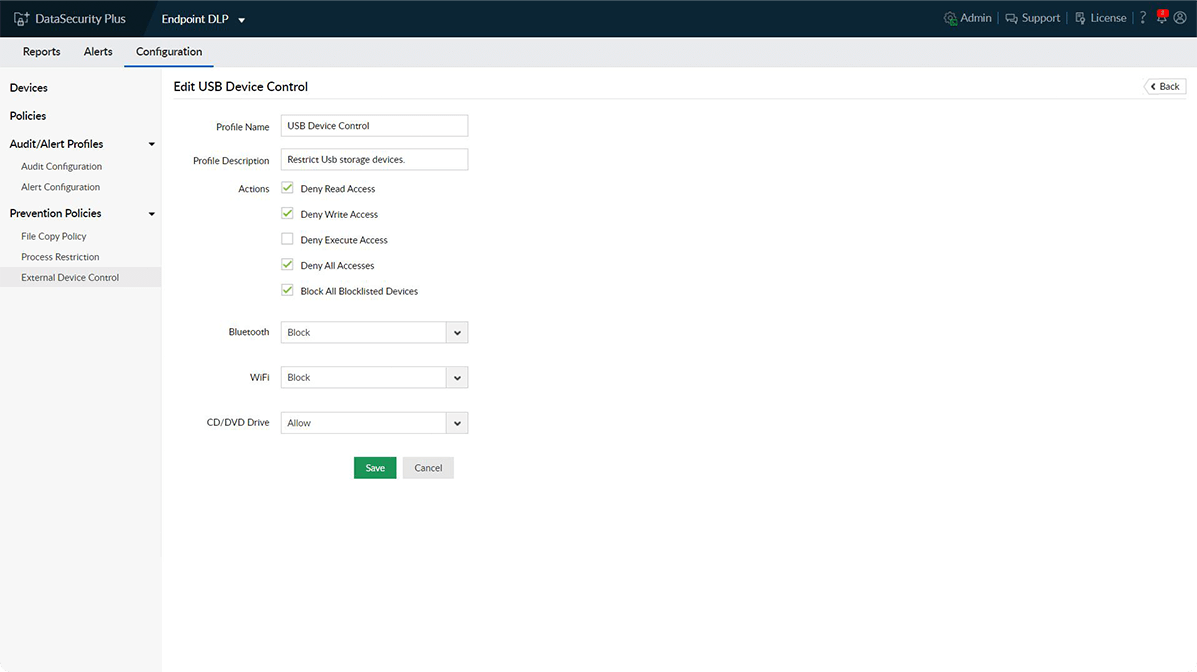 Prevent the movement of business-critical data to external storage devices with the help of USB copy protection functionality.