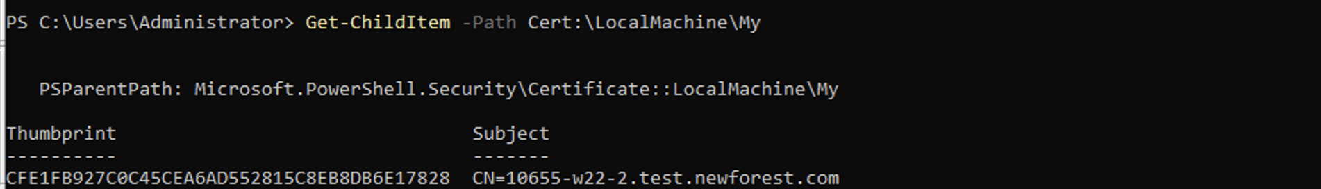 Incase there is no thumbprint available for the domain name, you have to create one with the following command: